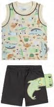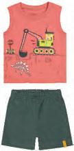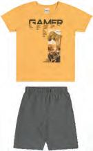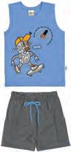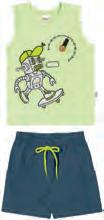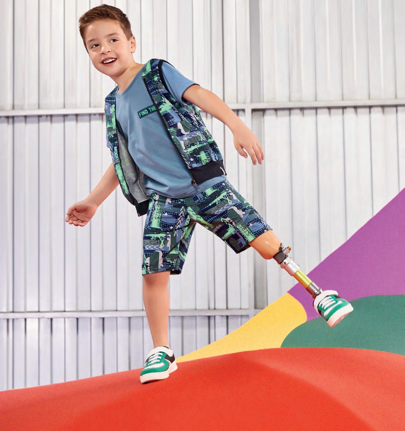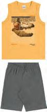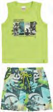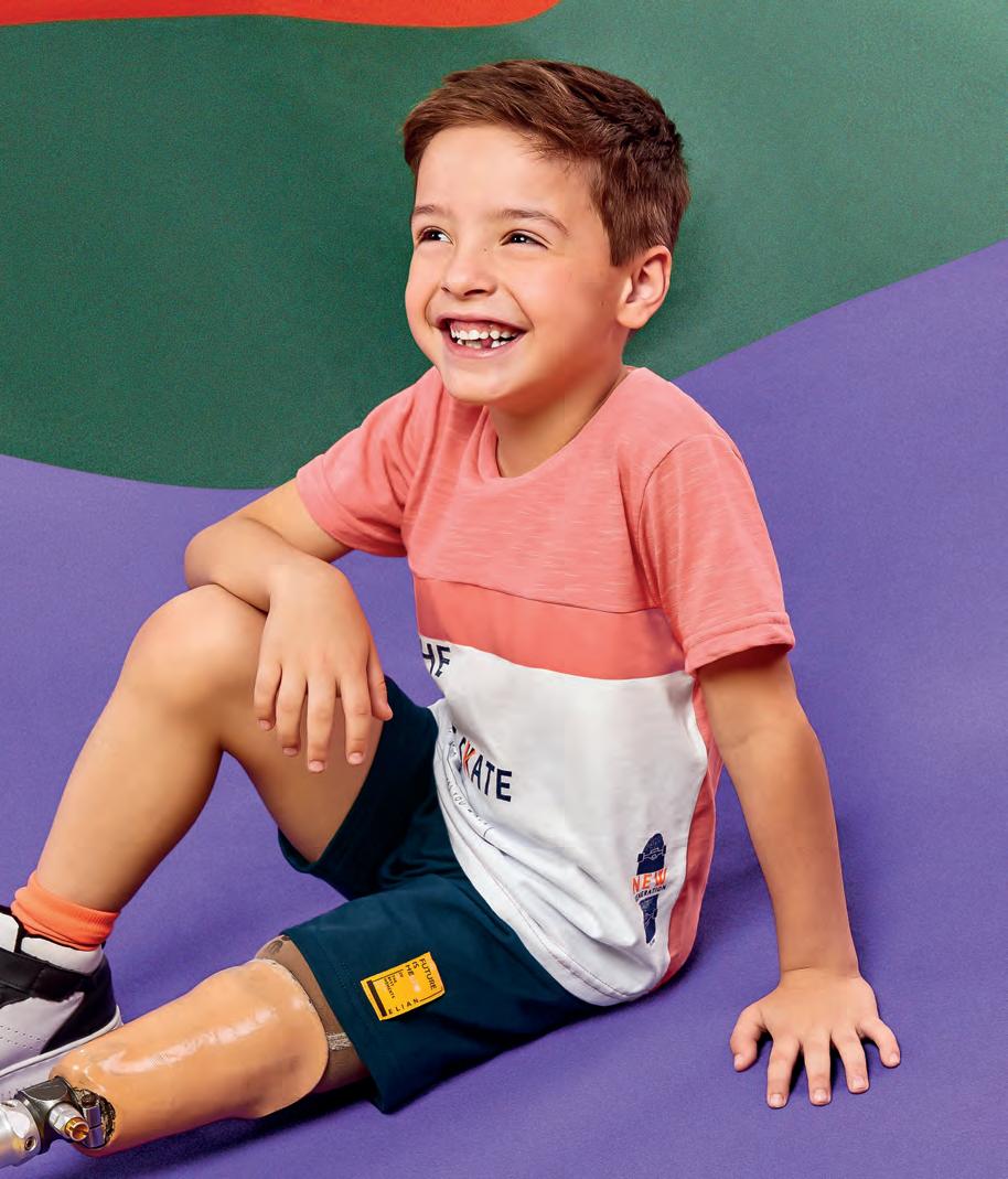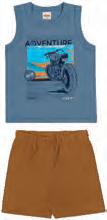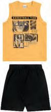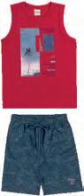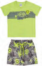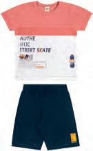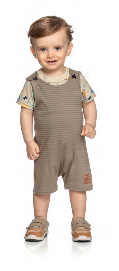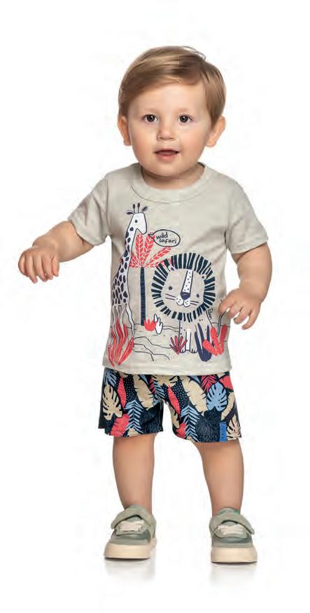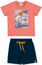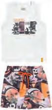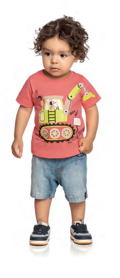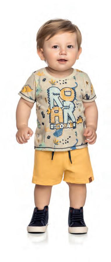 O estilo urbano é o queridinho dos meninos! O conjunto com camiseta, bermuda e colete ganha destaque com cores vibrantes e estampa divertida.