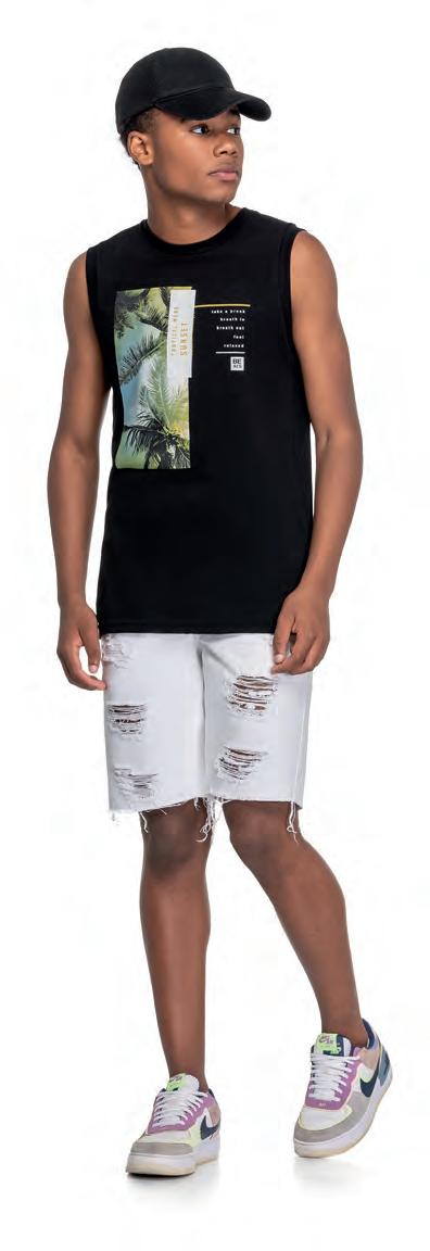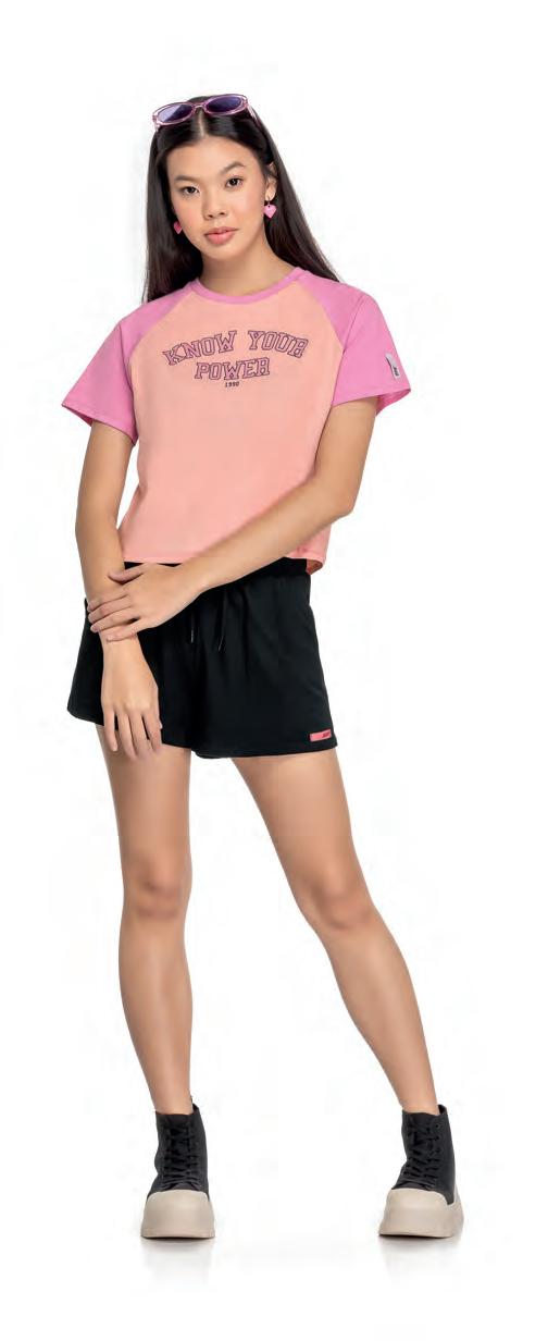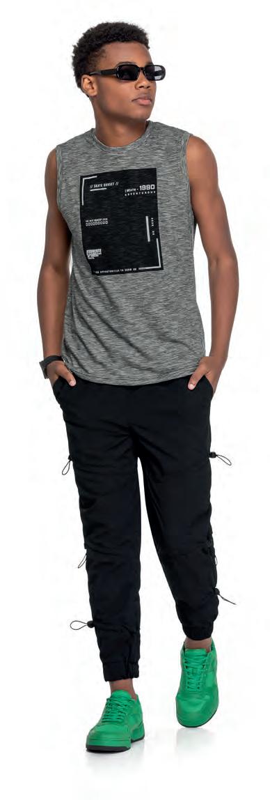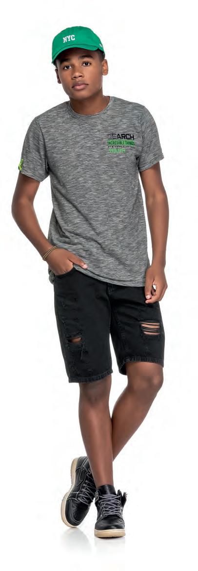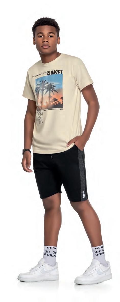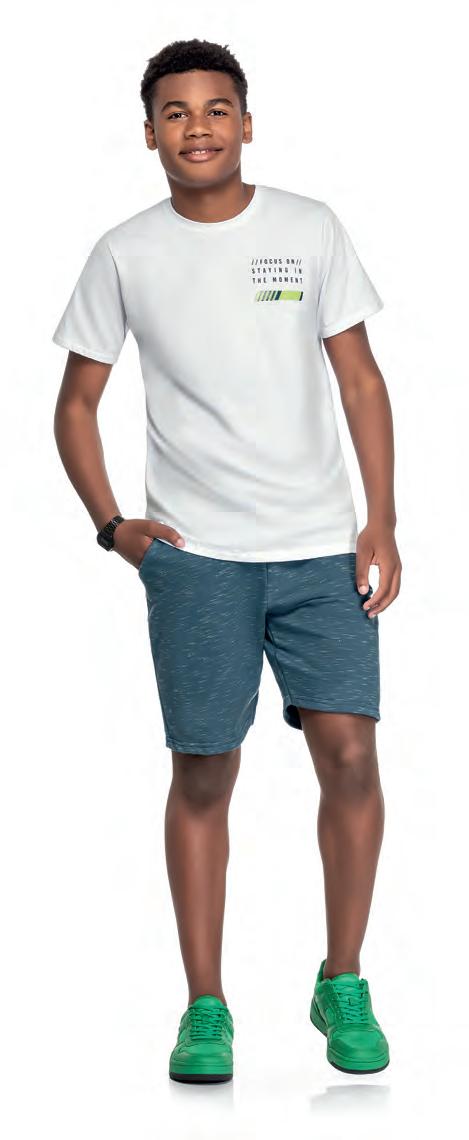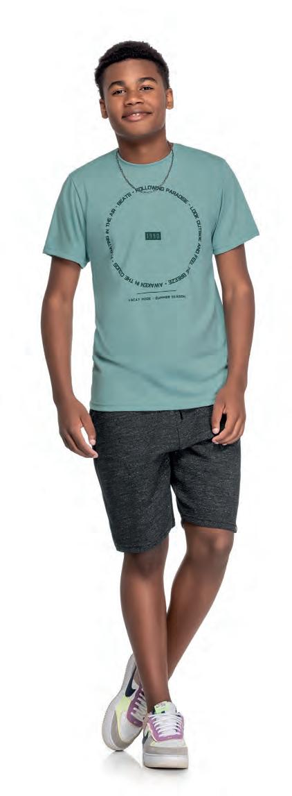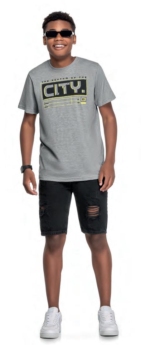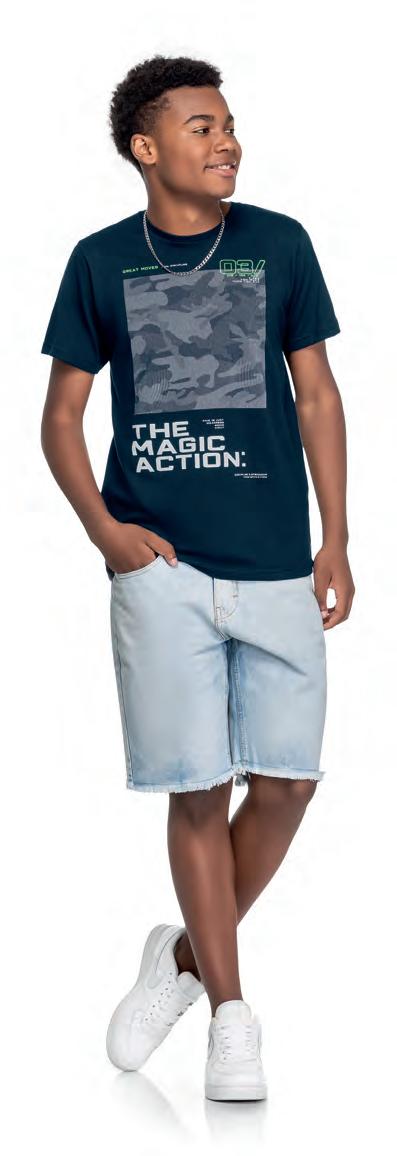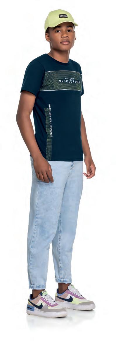 P. 133 Estampa Tam.: 10-12-14-16-18 26870 Camiseta em Meia Malha Penteada Jersey T-shirt Camiseta en Tejido de Punto 8020 3512 6751 Grandes Movimentos / Disciplina de ferro / Zero / Três / Barra / Primeiro caminha depois corre / a ação mágica / a dor é a fraqueza que vai embora / A disciplina é mais forte que a motivação. Estampa com relevo Tam.: 10-12-14-16-18 26879 Camiseta em Malha Rajada Striped Jersey T-shirt Camiseta en Tejido de Punto Rayado 7001 Costas 2053 6118 Sonhador imortal / Comunidade radical / Uma vida não é suficiente para viver todos os grandes momentos / Viva intensamente sem arrependimentos / Faça todos os momentos valerem a pena. / Pesquise coisas incríveis cidade de nova york #90 / Juventude. Estampa Tam.: 10-12-14-16-18 26874 Camiseta em Meia Malha Penteada Jersey T-shirt Camiseta en Tejido de Punto 8020 4052 7001 Carregando / Aventura urbana / Escondido nas ruas / Explorador de aventura / Buscando ação. LOOK DESTAQUE EDIÇÃO LIMITADA MODELAGEM AMPLA MODELAGEM CROPPED TINGIMENTO COM CORANTE NATURAL MICROFIBRA COM ELASTANO TRÊS ESTAMPAS DIFERENTES TRÊS PEÇAS
