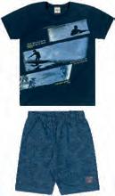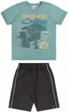 Conjunto com Camiseta em Meia Malha Penteada e Bermuda em Moletom Dublado
