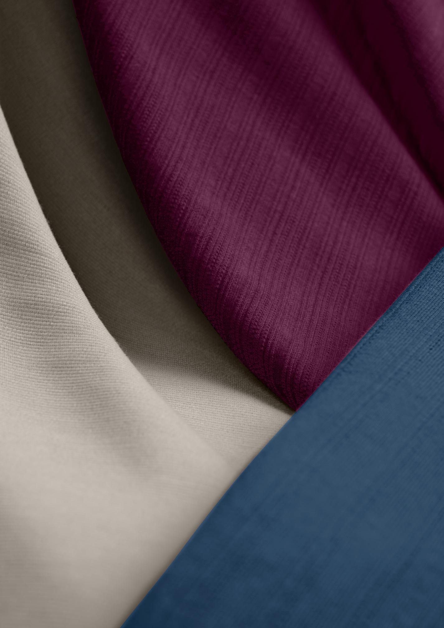 Malha leve composta por algodão, poliéster e linho, com uma construção que proporciona um visual irregular, despojado e rústico. O tingimento utiliza corantes naturais extraídos de cultivos, promovendo práticas sustentáveis na cadeia produtiva. Ideal para todos os segmentos, especialmente para o público masculino adulto e infantil.