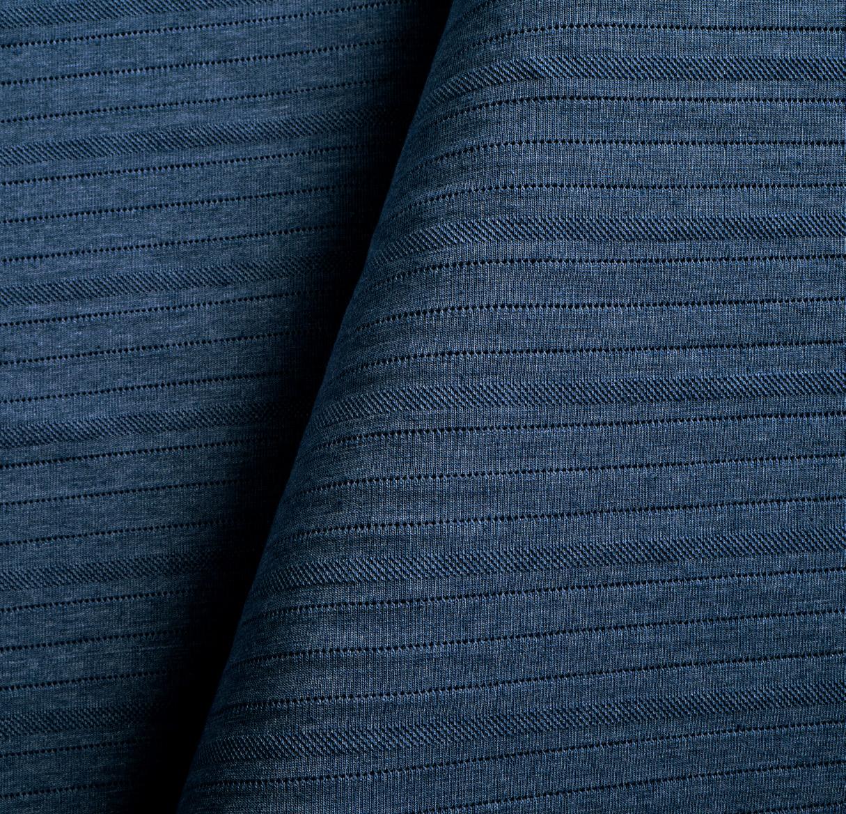 A malha com efeito sarjado apresenta uma textura diagonal característica de camisaria, enriquecida com biopolimento e amaciante. Essa combinação proporciona caimento, toque suave e um visual e sofisticado.