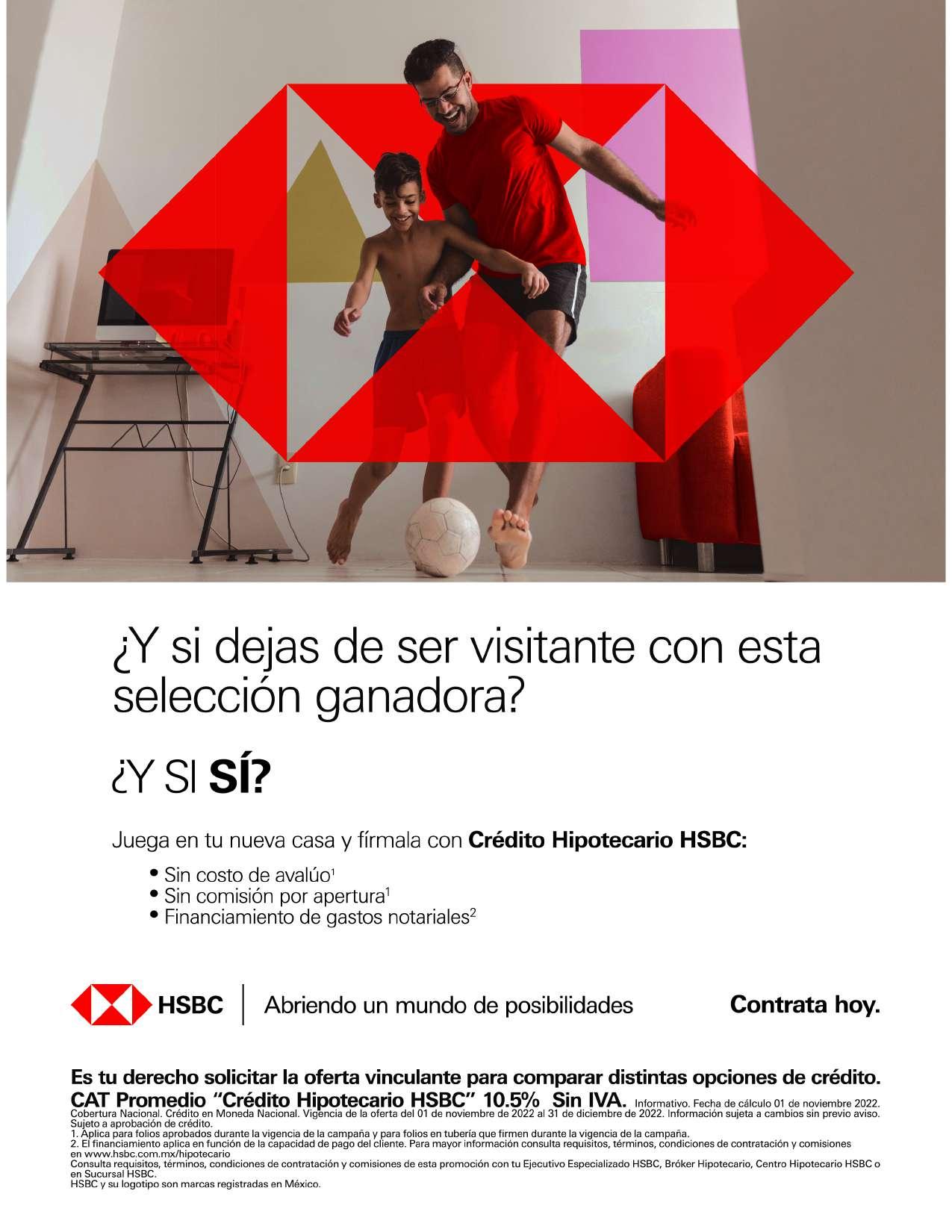 *CAT Promedio “”Crédito Hipotecario HSBC Pago Bajo para Clientes Premier”” 11.2% Sin IVA. Informativo. Fecha de cálculo: 22 de noviembre de 2022. Cobertura Nacional. Crédito en Moneda Nacional. Información sujeta a cambios sin previo aviso. Sujeto a aprobación de crédito. Consulta requisitos, términos, condiciones de contratación y comisiones en www.hsbc.com.mx