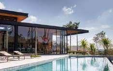 Casa moderna com 8 suítes, sendo 2 delas máster, sala estar, sala de jantar, espaço gourmet , 2 piscinas, energia fotovoltaica, mobília e excelente vista.