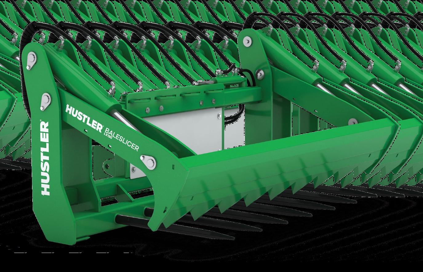 Hustler BaleSlice LX190 facilita a remoção do plástico, acelerando sua operação de alimentação. Com ele, é possível carregar o alimentador ou vagão misturador sem sair da cabine do trator. Possui um sistema seguro de 4 ganchos, que evita a queda do fardo durante a operação.