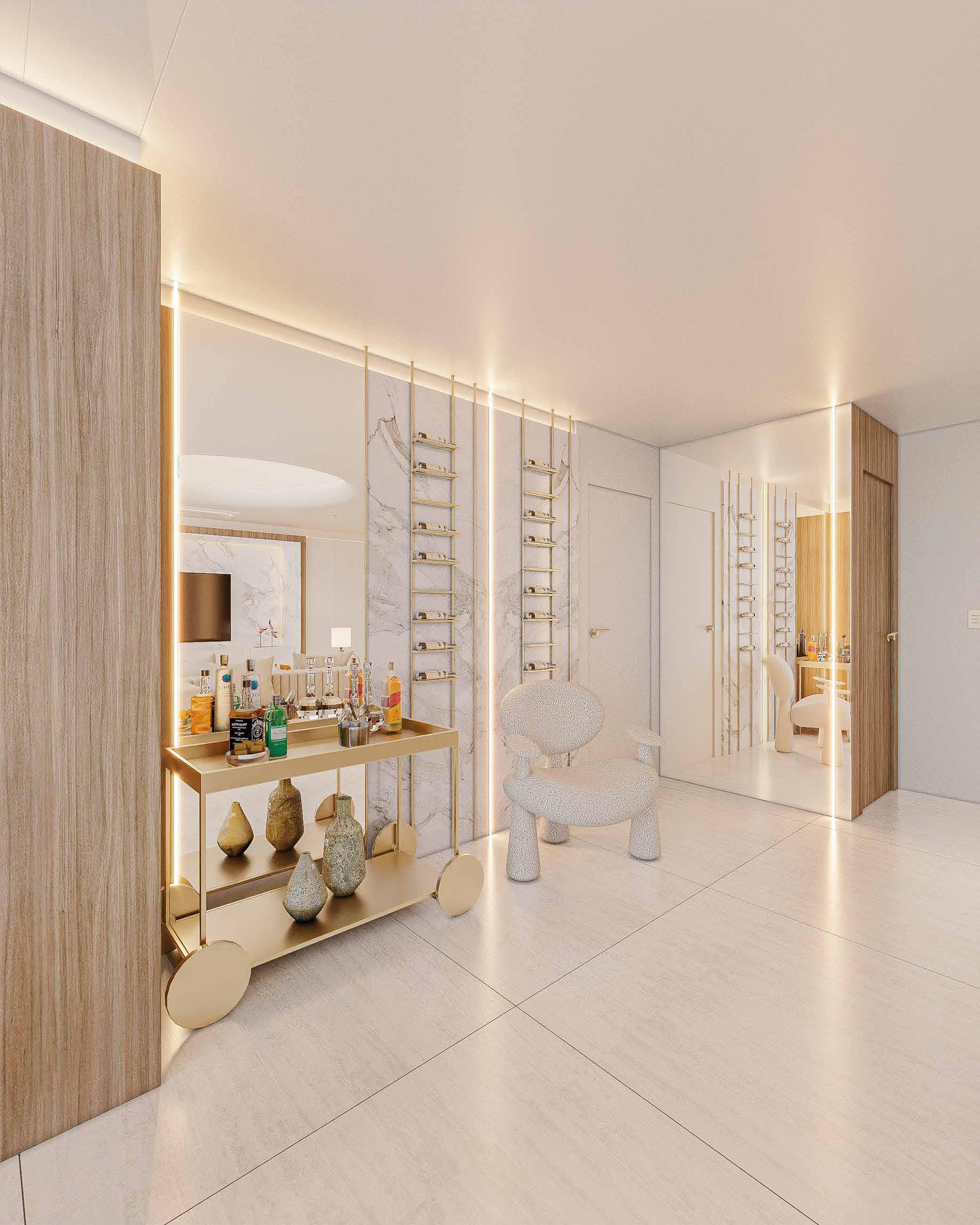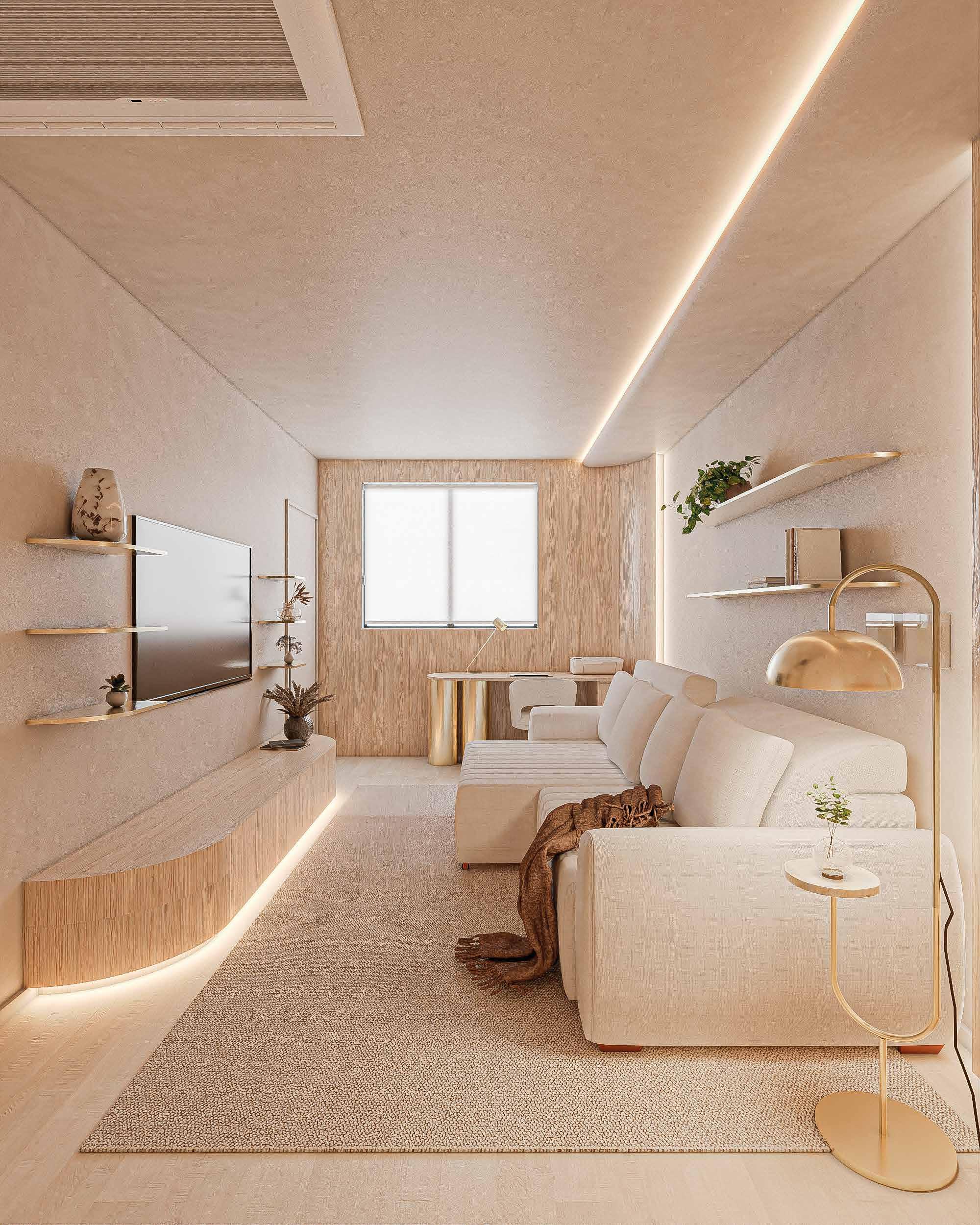 O projeto de interiores deste apartamento foi concebido como um verdadeiro refúgio, onde a combinação cuidadosa de texturas, iluminação e mobiliário cria um ambiente de tranquilidade e conforto. A proposta busca agregar valor, equilibrando simplicidade e elegância por meio de materiais refinados, móveis soltos com design sofisticado e peças funcionais que otimizam a organização. Além disso, a valorização da iluminação natural e a funcionalidade dos espaços são aspectos essenciais para garantir um lar acolhedor e harmonioso.