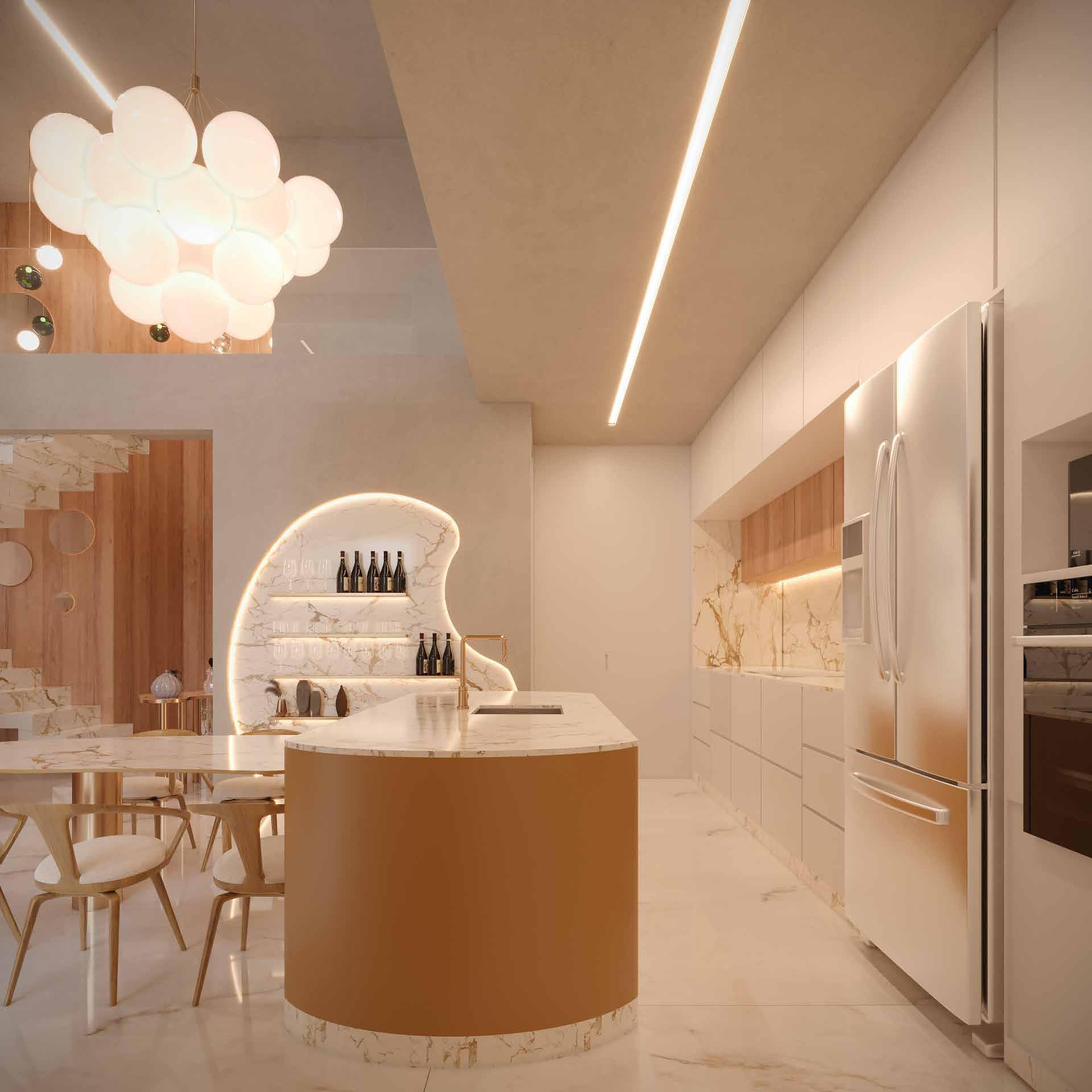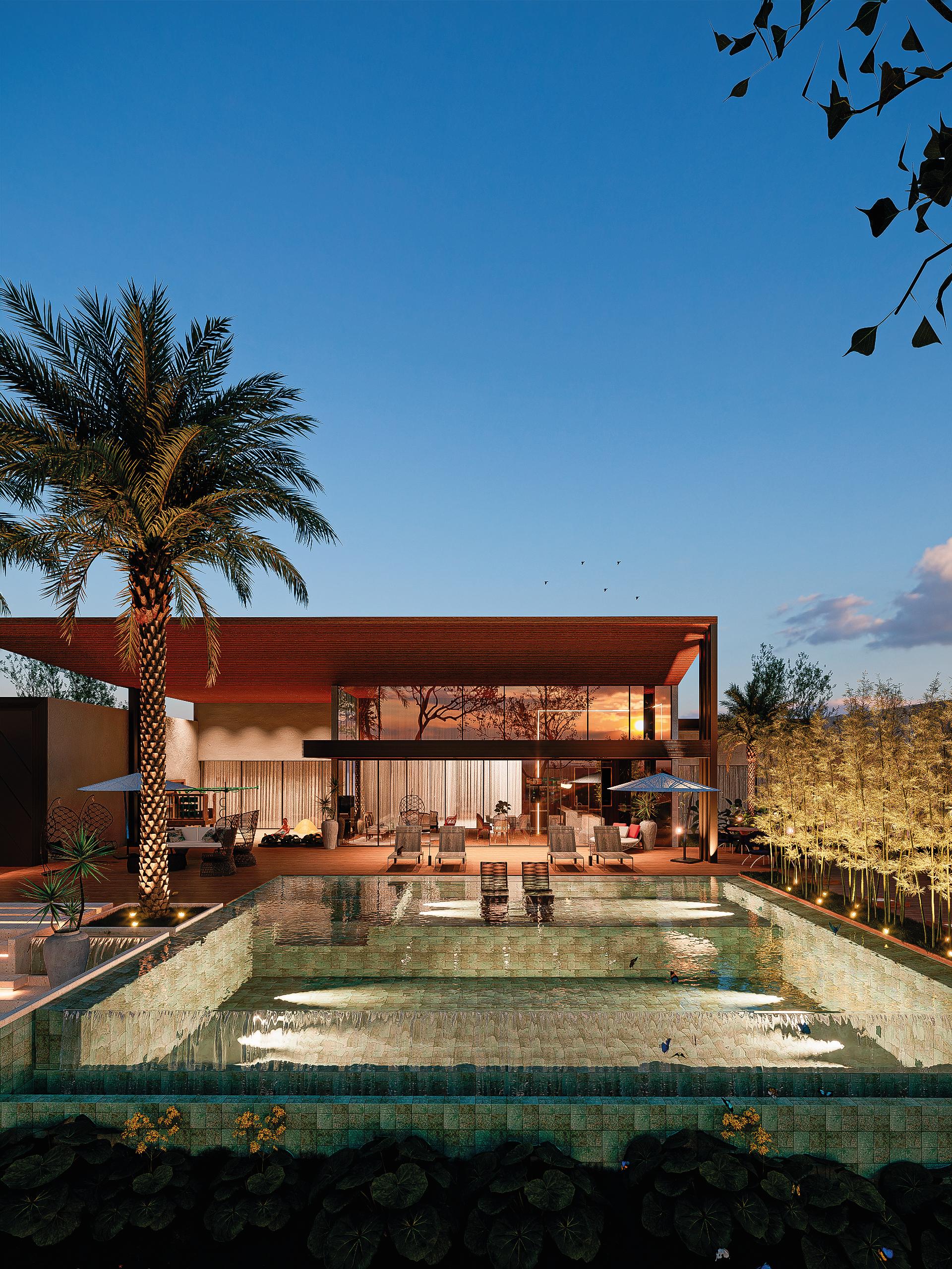 A Residencial Mon Revê é a expressão máxima de elegância e grandiosidade, onde a arquitetura se une ao design para criar uma atmosfera imponente e atemporal. A fachada imponente, combinada a materiais nobres e uma composição harmoniosa de formas e texturas, traduz a sofisticação característica do Studio Kaju. Já na área de lazer, a integração entre natureza e construção proporciona uma experiência visual fluida e acolhedora, equilibrando imponência e aconchego. Cada traço do projeto reflete a busca pela excelência, resultando em uma residência que impressiona tanto pela estética quanto pela funcionalidade.