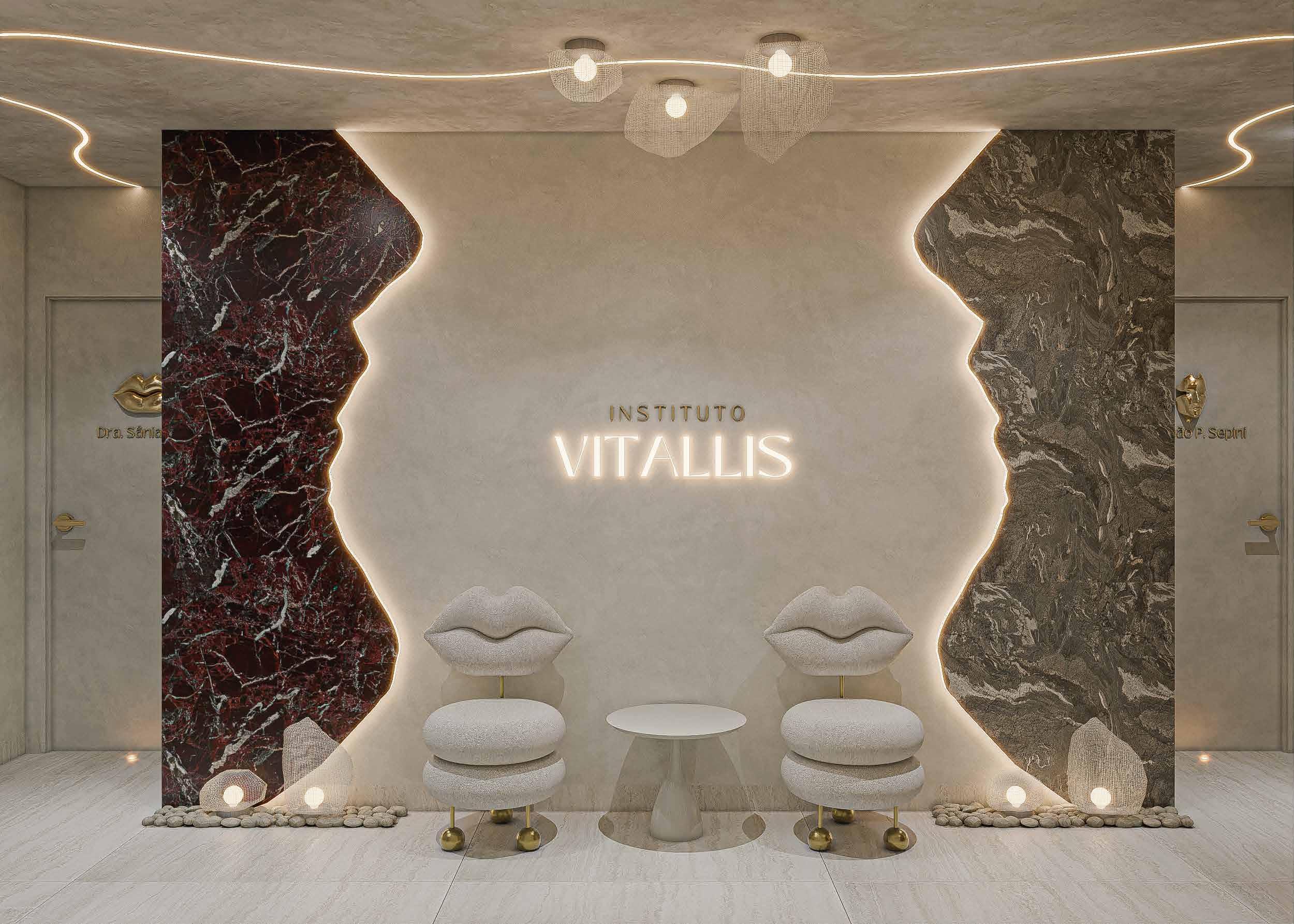 A clínica Vitallis é a união complementar perfeita entre saúde e beleza, pois tudo o que transmite vida e energia, se torna belo. A cor que representa a marca é o verde sálvia, emanando natureza e brasilidade. As formas a serem aplicadas ao projetos tem a função de se complementarem, as linhas orgânicas irão representar a beleza, logo a sinuosidade representará o lado feminino, já as linhas retas terão a função de representar a saúde, fazendo a vez do lado masculino. Elementos da natureza serão destaque, trabalhados em formas de jardins, pedras naturais e água.
