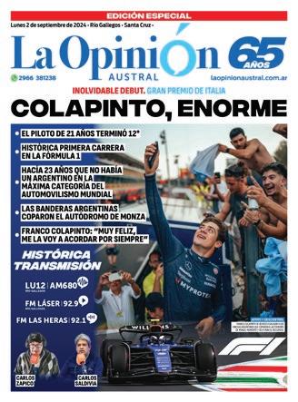 LA OPINION AUSTRAL fundada por Alberto Raúl Segovia el 27 de febrero de 1959. RNP N° en trámite. Propietario: LA OPINION AUSTRAL S.A. Dirección, Redacción y Administración: Zapiola 35. Planta Impresora y Distribución: Av. Lisandro de la Torre 991 (C.P. 9400) Río Gallegos, Fagnano 2156 (C.P. 9011) Caleta Olivia, Provincia de Santa Cruz, República Argentina. Teléfonos: (02966) 420185 / 420029, (0297) 154160785. Fax aut. las 24 hs. 422608. Publicidad 420023. Representante Comercial en Buenos Aires: Montiel S.A. Esmeralda 339 pisos 9 y 10 Tel. 4325-6078/6070/6079. Diario de la mañana. Miembro Fundador de la Asociación de Entidades Periodísticas de la Argentina (ADEPA), Asociación de Diarios del Interior (ADIRA).
