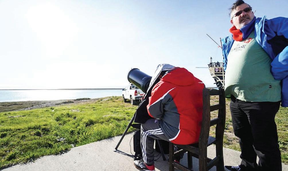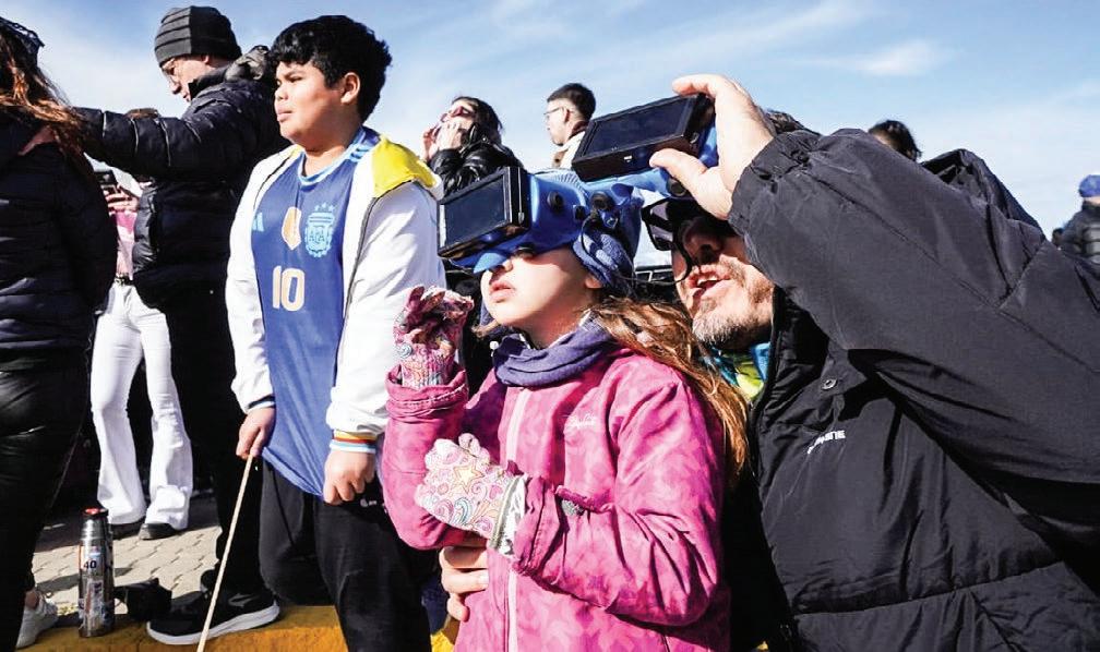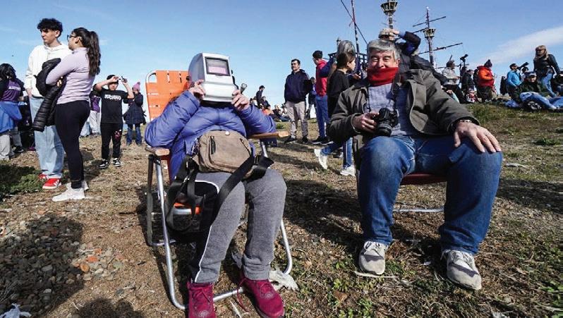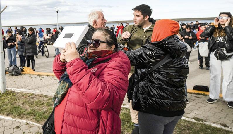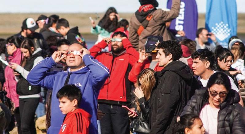 mo visitantes, se reunieron en el emblemático sitio de la Nao Vic‑ toria, compartiendo la experien‑ cia y, por un momento, olvidando las preocupaciones cotidianas. Este eclipse no sólo fue un es‑ pectáculo natural, sino un motivo de encuentro y celebración para los habitantes de Puerto San Ju‑ lián, quienes cuidaron con esme‑ ro su entorno natural, destacan‑ do el respeto por el lugar.