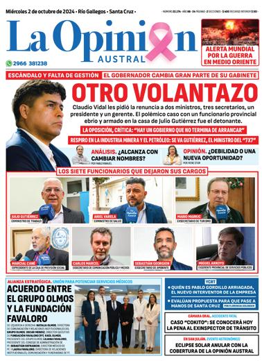 Cabe recordar que Vidal acep‑ tó la renuncia del ministro de Tra‑ bajo, Empleo y Seguridad Social, Julio Gutiérrez. El titular de la cartera laboral estaba en el cen‑ tro de las miradas porque fue en su domicilio donde los implica‑ dos en un siniestro vial se refu‑ giaron, algo que sacudió el barrio Gregores de Río Gallegos. “Quie‑ ro pedir disculpas a la sociedad por lo que ha sucedido”, dijo el gobernador el martes en el Salón Blanco.