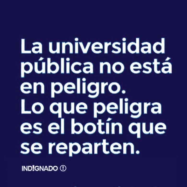que estuvo presente Massa, el que ajustó de verdad a la universidad para financiar la campaña, que estuvo la corrupta de CFK quien años atrás les dijo a los docentes que eran vagos”. Minutos más tarde, el Presidente compartió en su Instagram una placa donde se expresa: “La universidad pública no está en peligro. Lo que peligra es el botín que se reparten”. En la descripción amplió: “No dejes que te usen políticamente los golpistas...”. En tanto, a través de un comunicado de la Oficina del Presidente, en el que confirmó el veto a la ley de financiamiento universitario, sostuvo que “el Poder Ejecutivo celebra el sinceramiento de los dirigentes Cristina Kirchner, Sergio Massa, Martín Lousteau, Horacio Rodríguez Larreta y Elisa Carrió, quienes han decidido unirse públicamente con el objetivo de obstruir el plan económico del Presidente”.