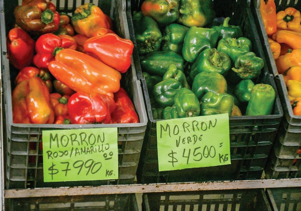 En una recorrida realizada por La Opinión Austral, se pudo consta‑ tar que en el caso del morrón ro‑ jo, su precio alcanzaba en algu‑ nos casos los 8 mil pesos, casi el doble que el verde, que rondaba los 4.500 pesos