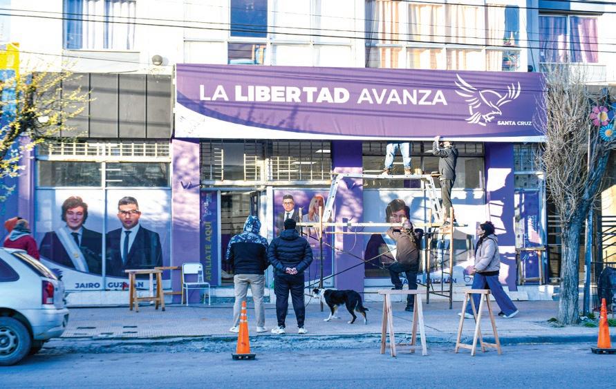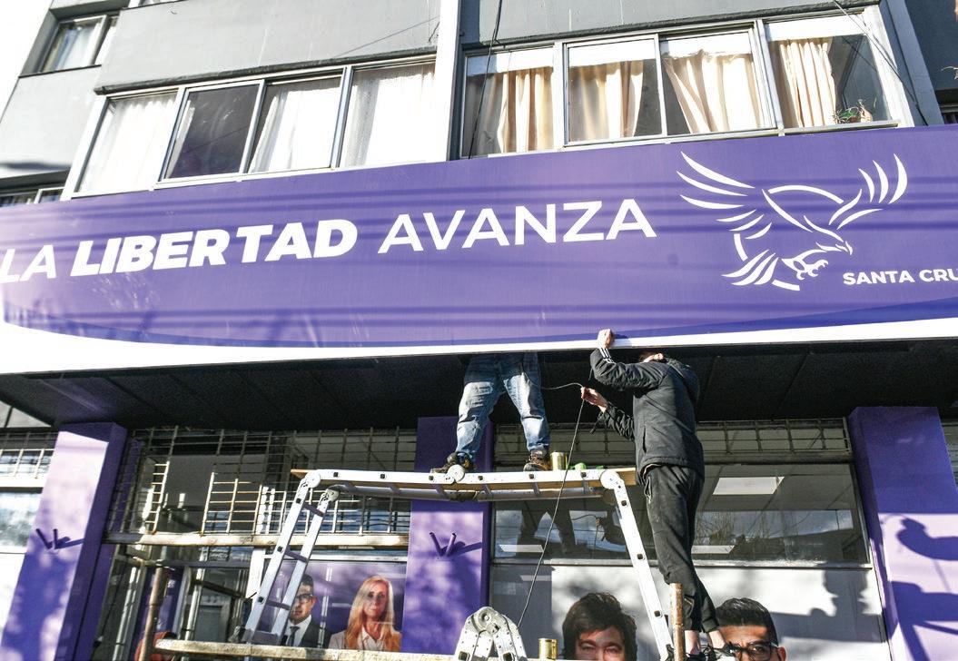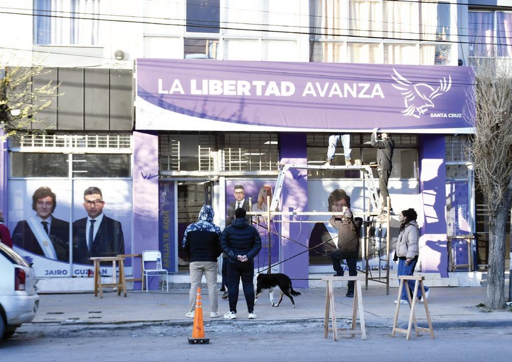 En este escenario, La Libertad Avanza se encuentra en plena posesión de un espacio físico que otrora fue testigo de los aconte‑ cimientos políticos de las últi‑ mas décadas en la política san‑ tacruceña, regional y nacional Mientras refaccionan el local y sus adherentes se acercan a darle forma y color al espacio, bajaron los cuadros de los líderes del PJ Santa Cruz