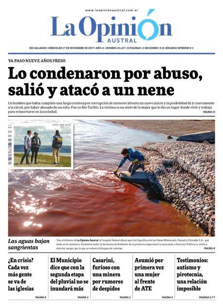 LA OPINION AUSTRAL fundada por Alberto Raúl Segovia el 27 de febrero de 1959. RNP N° en trámite. Propietario: LA OPINION AUSTRAL S.A. Dirección, Redacción y Administración: Zapiola 35. Planta Impresora y Distribución: Av. Lisandro de la Torre 991 (C.P. 9400) Río Gallegos, Fagnano 2156 (C.P. 9011) Caleta Olivia, Provincia de Santa Cruz, República Argentina. Teléfonos: (02966) 420185 / 420029, (0297) 154160785. Fax aut. las 24 hs. 422608. Publicidad 420023. Representante Comercial en Buenos Aires: Montiel S.A. Esmeralda 339 pisos 9 y 10 Tel. 43256078/6070/6079. Diario de la mañana. Miembro Fundador de la Asociación de Entidades Periodísticas de la Argentina (ADEPA), Asociación de Diarios del Interior (ADIRA).