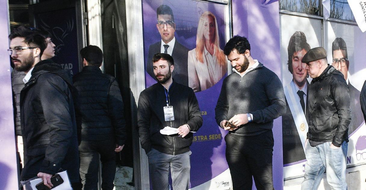 Otra presencia que sorprendió en el local de La Libertad Avanza fue la del dirigente radical de Cale‑ ta Olivia, Matías Quinteros. En su momento, por el año 2021, al exti‑ tular del Comité local de la UCR lo habían separado por una denuncia por violencia de género. Más tarde volvió a presentarse, pero el comité fue intervenido hasta que se vol‑ vieron a realizar elecciones este año. El jueves, se lo vio participan‑ do del acto de LLA y algunos ya se preguntan si pasará a las filas liber‑ tarias. En tanto, otro dirigente, pero en este caso peronista, que anduvo en la calle Kirchner donde se reali‑ zaba el acto fue Manuel Gómez