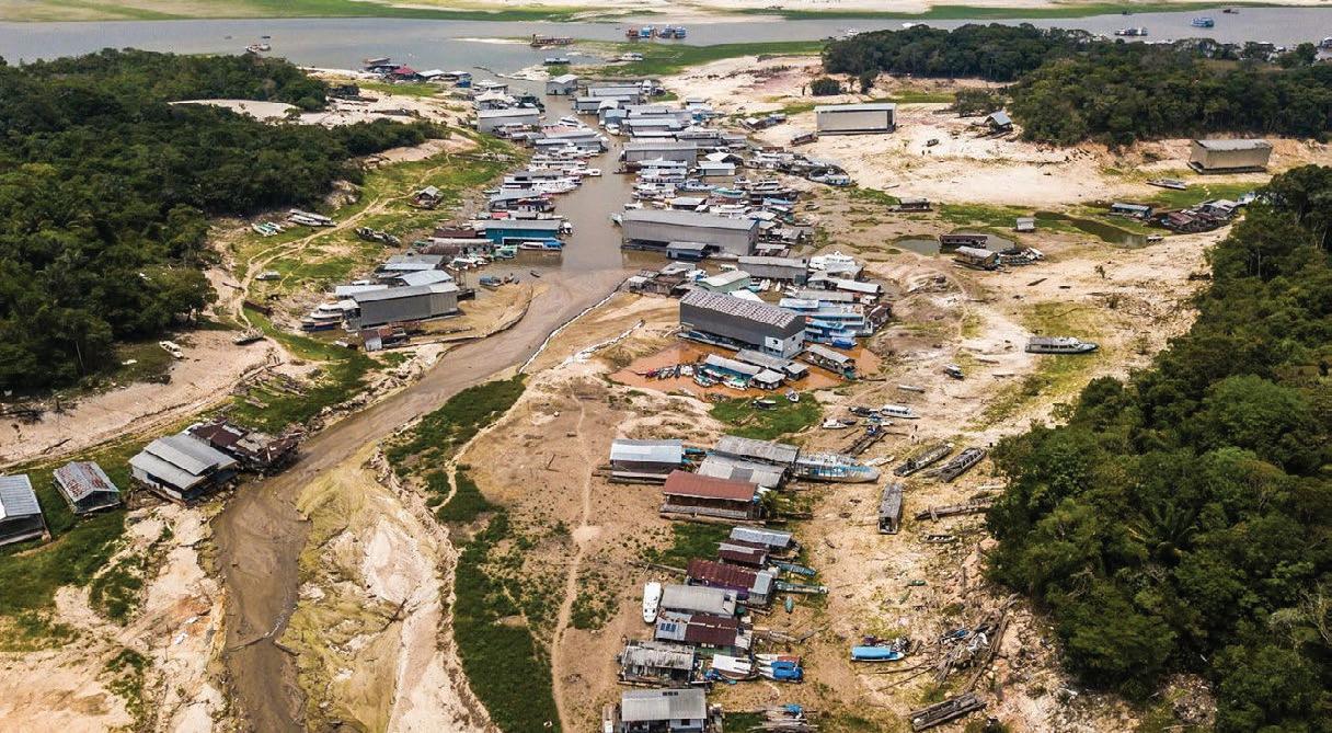 El descenso impactó de manera negativa el trasiego de personas y cargas vitales, así como el acceso de buques de carga al centro inter‑ nacional de producción de Manaos. Pero no son los únicos. De acuerdo con el Instituto Brasileño de Geo‑ grafía (IBGE), la sequía generó un incremento en septiembre de 0,44 por ciento en los precios (mayor variación del mes desde 2021) y un 0,50 por ciento en pre‑ cios de los alimentos.