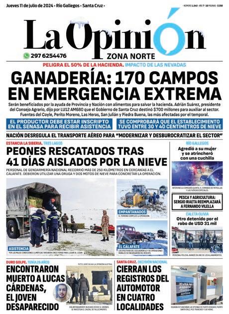 El Gobierno nacional asistirá con $ 1.300 millones a la Pata‑ gonia, región afectada por la ola de frío polar. Las jurisdicciones alcanzadas por la ayuda son Río Negro Chubut y Santa Cruz mientras que Neuquén no recibi‑ rá nada.