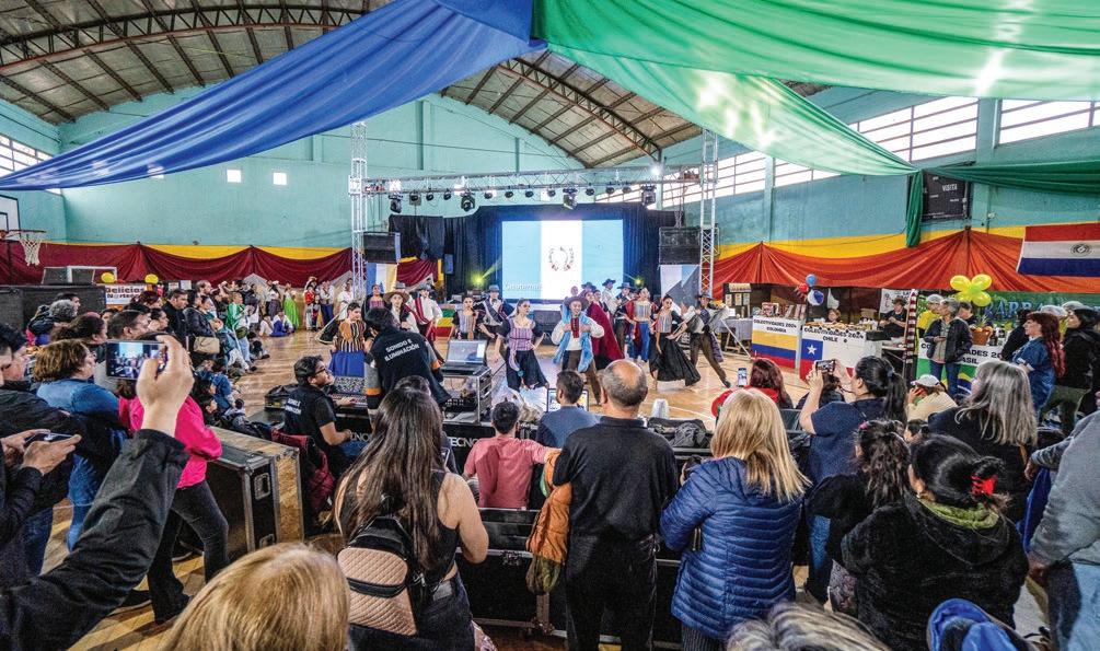 Por la noche, el gimnasio muni‑ cipal fue escenario de una velada cultural que incluyó las presenta‑ ciones de Danza Acrobática Tempo, Ballet Municipal Vientos de Tradi‑ ción, The Chacos, Oniré, La Carreta Rock y un cierre a cargo de Siete Venas From del Monte.