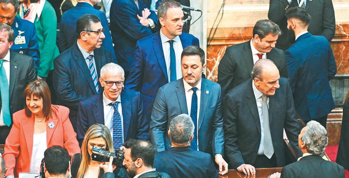 Dieron el presente el bloque completo de diputados y senadores de La Libertad Avanza, también de los aliados del PRO y el del MID que tiene tres diputados. Se destacó la concurrencia del jefe de bloque de Encuentro Federal, el diputado Miguel Ángel Pichetto. En contrapartida, no formaron parte de la cita Nicolás Massot y Emilio Monzó. No fue sorpresivo para el Presidente encontrarse con varias bancas de la oposición vacías. La ausencia notoria fue la de Unión por la Patria que tiene 99 diputados y 33 senadores pero concurrieron 17 legisladores y los jefes de bloque, Germán Martínez y José Mayans, respec-
