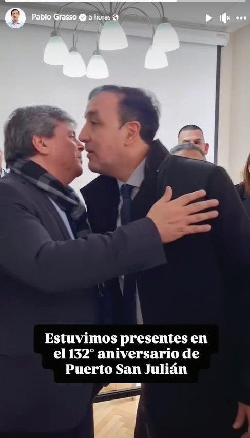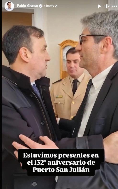 “Fuimos a acompañar al intendente (Daniel) Gardonio que invitó al intendente (Pablo) Grasso”, indicó el jefe de Gabinete Diego Robles a La Opinión Austral. El saludo con ministros del Gabinete provincial y hasta el abrazo con el vicegobernador Fabián Leguizamón.