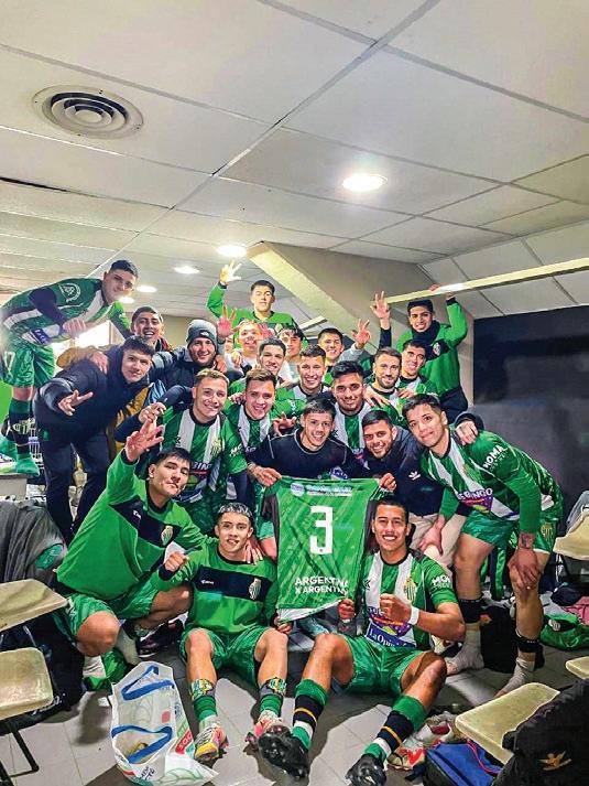 ¡3! El festejo del Albiverde en el vestuario tras la gran victoria.