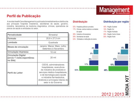 A revista HealthCare Management é publicada bimestralmente e distribuída aos principais hospitais brasileiros, secretarias de saúde, governo, indústria, laboratórios de medicina diagnóstica, clínicas, operadoras de planos de saúde e entidades do setor.