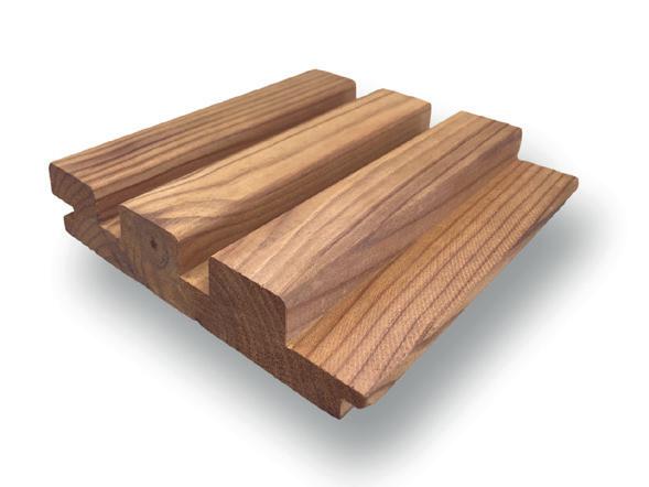 de autor EL RITMO DE LA CURVA Perfil machihembrado desarrollado por el diseñador danés Henrik Tjaerby inspirado en el ritmo de las olas. Medidas disponibles: 96 x 22 mm Especies recomendadas: Ayous, Haya y Pino Tea.