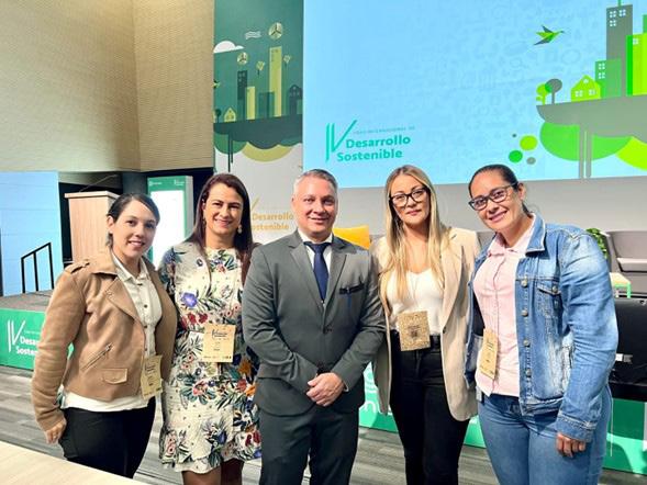 El Grupo Réditos participó en el IV Foro Internacional de Desarrollo Sostenible, organizado por Icontec, actividad que convocó a las empresas que desde sus acciones diarias aportan al cuidado del medio ambiente. En la fotografía, de izquierda a derecha: Jackeline Moreno, analista ambiental y SST del Grupo Réditos; Gloria Estela Zapata Martínez, gerente de Cuenta ICONTEC; Camilo Andrés Carvajal Guerra, profesional de Validación y Verificación – ICONTEC; Mónica Ríos, coordinadora Seguridad y Salud en el Trabajo de Grupo Réditos y Sara Lizeth Salamanca Arias, profesional Universitario Área Metropolitana del Valle de Aburrá.