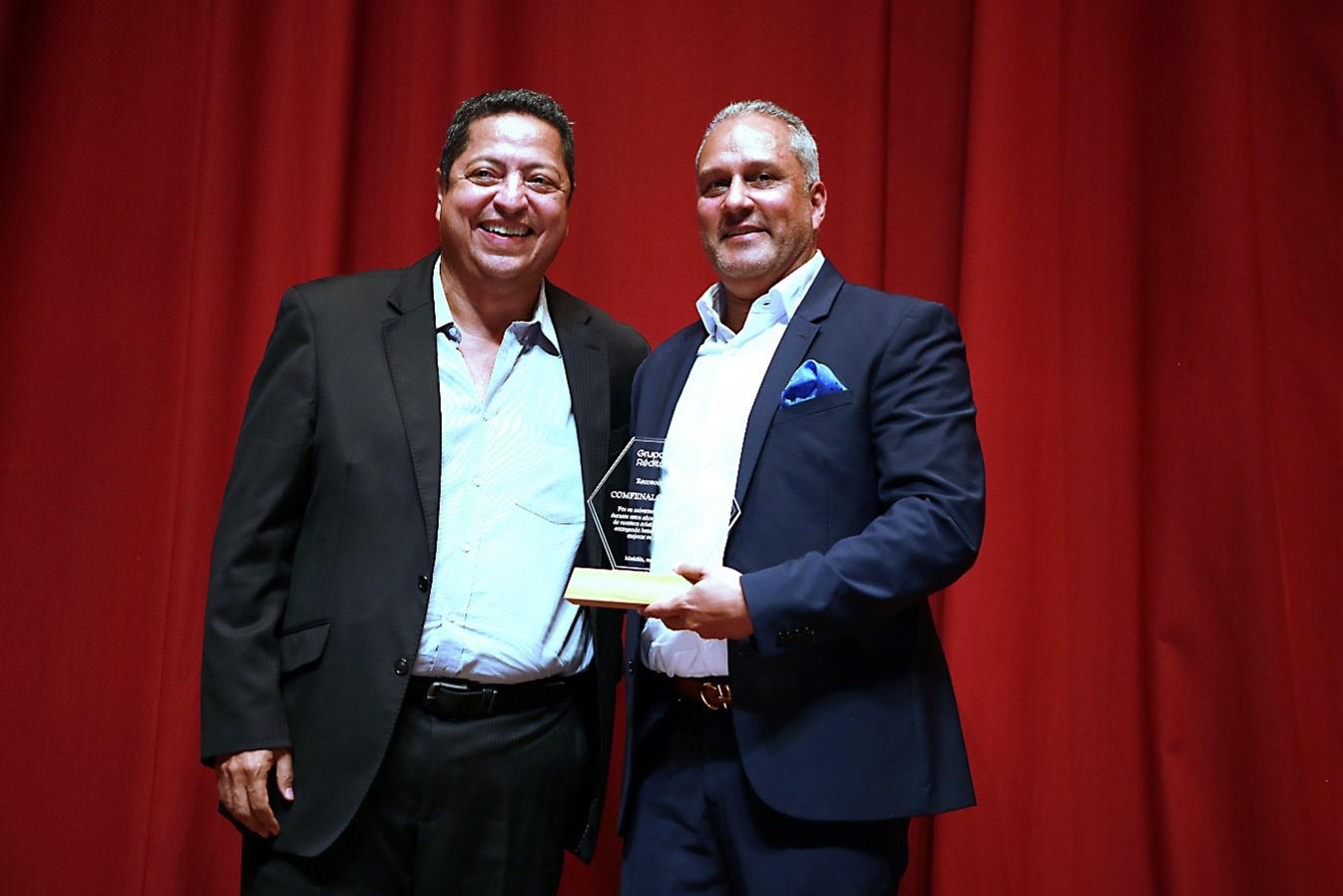 Grupo Réditos hizo presencia en la conmemoración de los 65 años de Comfenalco Antioquia, reconociendo el compromiso de la entidad en pro del bienestar y la calidad de vida de los colaboradores de la compañía. En la fotografía de izquierda a derecha: Carlos Enrique Salazar Sosa, vicepresidente Corporativo del Grupo Réditos y Jorge Alejandro Gómez Bedoya, director de Comfenalco Antioqua.