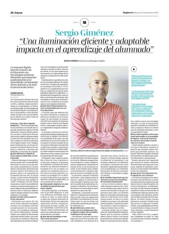Sergio Giménez “Una iluminación eficiente y adaptable impacta en el aprendizaje del alumnado” SERGIO GIMÉNEZ es Key Account Manager en Signify