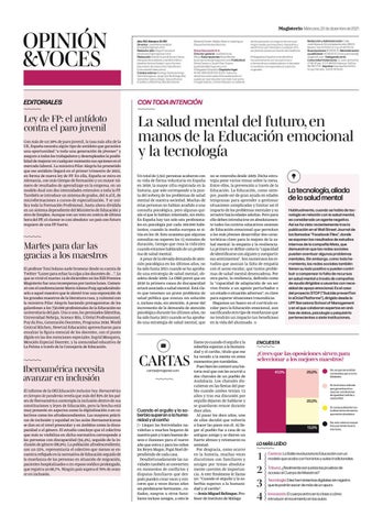 Magisterio Miércoles, 22 de diciembre de 2021 Año 153. Número 12.291 Director: José María de Moya (jmoya@magisnet.com). Redactor jefe: Diego Francesch (dfrancesch@magisnet.com). Redacción: Adrián Arcos (Educar), Saray Marqués (Actualidad), José María Mora (diseño), Ainhoa Azabal , Laura Tornero (secretaria de redacción), Pablo Rovira (Comunidad Valenciana). Colaboradores: Rodrigo Santodomingo, Gema Eizaguirre, Jorge Zorrilla (fotografía), Sonia Barrado (La Rioja), Teresa Álvarez (Castilla-La Mancha), Alba Bartolomé