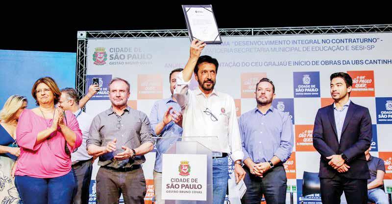 Oprefeito Ricardo Nunes assinou a autorização para o início da construção do Centro Educacional Unificado (CEU) Grajaú, na Zona Sul da capital, em cerimônia no CEU Navegantes, que ganhou um novo complexo aquático, na manhã do dia 7 de abril. A previsão é de que o novo CEU atenda diariamente mais de 3 mil pessoas nas atividades educacionais, culturais e esportivas.