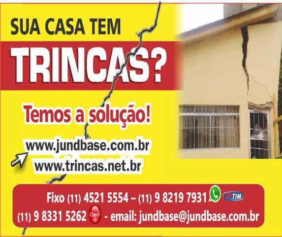 São Paulo, 11 a 17 de maio de 2024 3 CLASSIFICADOS AVENIDA SANTO AMARO, 6.540 - GRANJA JULIETA - SP • VENDE • ALUGA • ADMINISTRA CRECI: 023775J LANDYS IMÓVEIS E ADMINISTRAÇÃO EIRELI - EPP ‘EM QUALQUER REGIÃO, A SUA OPÇÃO’ RESIDÊNCIA OU COMÉRCIO • CASAS • TERRENOS • APARTAMENTOS E-MAIL: RECEPCAOLANDYS@GMAIL.COM VISITE NOSSO SITE: LANDYSIMOVEIS.COM.BR (11) 5524-2930 (11) 94891-1013 Só R$ 599.000,00 Só R$ 287.000,00 Só R$ 697.000,00 Aluguel R$ 1.900,00 (pacote) Alugo apartamento com 1 dormitório e demais dependências + 1 vaga. SOBRADO REGIÃO SANTO AMARO SOBRADO NA AV. SANTO AMARO, 6550 APTO. AO LADO METRÔ SANTO AMARO SANTO AMARO PRÓXIMO AO METRÔ Contato Fone 998544-892 ou 5524-2930 Contato Fone 998544-892 ou 5524-2930 Contato Fone 998544-892 ou 5524-2930 Contato Fone 998544-892 ou 5524-2930 Vendo c/90m², 2 dorms., sala em ‘L’, ampla coz., 2 banhs. e lavanderia. Vendo c/3 dormitórios, sala ampla, cozinha ampla, edícula e 2 vagas. Vendo com 4 salas, 2 WC, 2 vagas. Galinha morta. Não existe mais barato Galinha morta. Não existe mais barato 5587-1616 99799-2626 riccasp@riccasp.com.br www.riccasp.com.br PROJETOS - PREFEITURA BOMBEIRO AVCB CONTRU (AVS) VIGILÂNCIA SANITÁRIA CETESB MEIO AMBIENTE RECLAMAÇÃO TRIBUTÁRIA (IPTU) AUTO DE REGULARIDADE (PMSP) LICENÇA DE FUNCIONAMENTO CARTÓRIOS - RETIFICAÇÕES ADVOCACIA ANISTIA DE IMÓVEIS FOI PRORROGADA REGULARIZE JÁ O SEU IMÓVEL JUNTO A PMSP! ATENÇÃO - APROVEITE! CONSULTE-NOS, ORÇAMENTOS SEM COMPROMISSO. COTIDIANO LBV mobiliza doações para atender vítimas das chuvas no Estado gaúcho Alerta de golpe: INSS não está fazendo prova de vida em casa