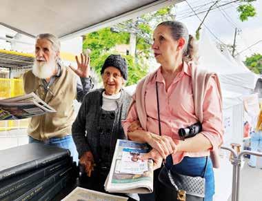 A estrutura foi outro destaque do festejo, que teve segurança privada do grupo SEGlife. Para as mães de crianças pequenas e de colo, a organização da festa providenciou os serviços da MADRE, a rede de apoio que acolhe mães e crianças em eventos criando um espaço em que eles possam ter um momento de conforto, silêncio e autocuidado. O festival contou com o apoio das PM e Guarda Municipal que fizeram a operação de segurança da festa. “O evento transcorreu dentro da normalidade. Tivemos um revezamento de equipes e sem ocorrências”, comentou o Subinspetor da GCM Meira. O mesmo foi afirmado pela Polícia Militar “por ser o primeiro ano, está tranquilo, a região é tranquila e estamos sem ocorrência” contou a sargento Medeiros. Mais uma vez, a exposição itinerante “Gazeta de Santo Amaro - Fragmentos da Nossa História”, esteve presente. A mostra reúne arquivos desde 1960, ano de fundação da Gazeta, até 2025, com as publicações mais novas e as questões do nosso tempo. A oportunidade do espectador folhear matérias antigas, conhecer a trajetória de um dos jornais de bairro mais importantes de São Paulo e também ver as mudanças da Zona Sul da cidade.