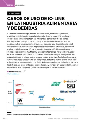 CASOS DE USO DE IO-LINK EN LA INDUSTRIA ALIMENTARIA Y DE BEBIDAS IO-Link es una tecnología de comunicación fiable, económica y sencilla, especialmente indicada para aplicaciones básicas de control. Sin embargo, debido a sus limitaciones técnicas inherentes -como el ancho de banda restringido, la topología punto a punto y la escalabilidad limitada-, IO-Link no es aplicable universalmente a todos los casos de uso. Especialmente en el contexto de la automatización de procesos de alimentos y bebidas, es esencial evaluar cuidadosamente dónde el uso de dispositivos IO-Link añade valor y dónde no se recomienda utilizar IO-Link como tecnología independiente. Esto es especialmente importante a la hora de planificar estrategias de digitalización preparadas para el futuro, que a menudo exigen una mayor flexibilidad, un mayor caudal de datos y capacidades en tiempo real. Este libro blanco ofrece un análisis exhaustivo de las áreas en las que IO-Link destaca en el sector de la alimentación y las bebidas, las áreas en las que se queda corto y el modo en que puede integrarse en sistemas más complejos utilizando tecnologías complementarias. Endress+Hauser www.endress.es
