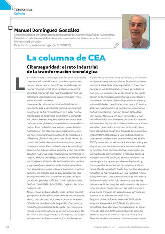 22 La Columna de CEA: El reto industrial de la transformación tecnológica, por Manuel Domínguez González, Línea Estratégica de Ciberseguridad Industrial del Comité Español de Automática