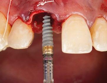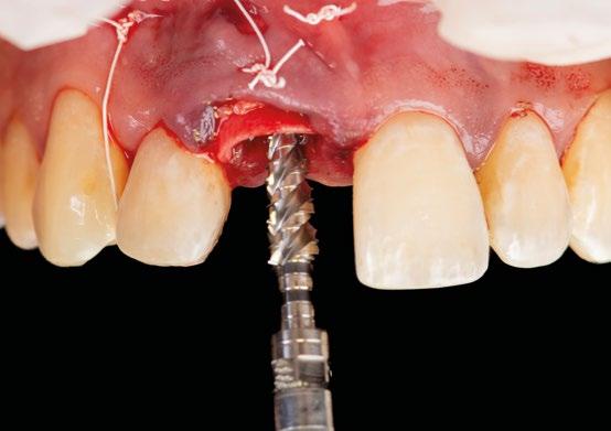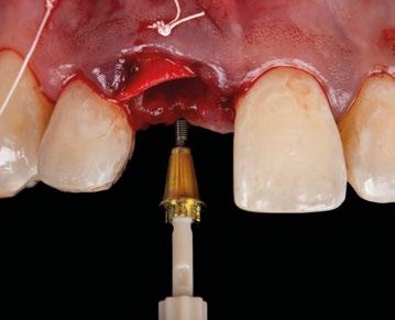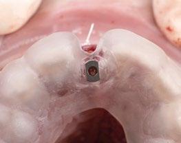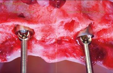 zona y poder lograr un adecuado torque de inserción es recomendable colocar los implantes en la orientación del hueso, que la gran mayoría de veces discurre en la misma dirección de los bordes incisales de los dientes anteriores. Para compensar y llevar la emergencia de los accesos de los tornillos protésicos hacia palatino se utiliza un pilar Multi-unit de 17º. El dilema en esta zona recae en qué altura de pilar utilizar. Si se utili -