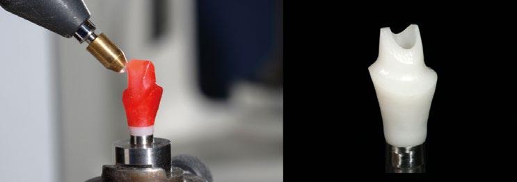 Durante los 17 años siguientes, ambos implantes funcionaron de manera satisfactoria, cumpliendo correctamente su cometido tanto en el plano funcional como en el estético. Sin embargo, en 2005 fue necesario sustituir la corona del incisivo central debido a una nueva fractura. Para ello se recurrió a la tecnología disponible en ese momento: se diseñó un pilar en resina acrílica, que posteriormente fue escaneado y fresado en zirconio (Procera), sobre el cual se confeccionó una corona totalmente cerámica en alúmina. (Fig. 9 y 10)