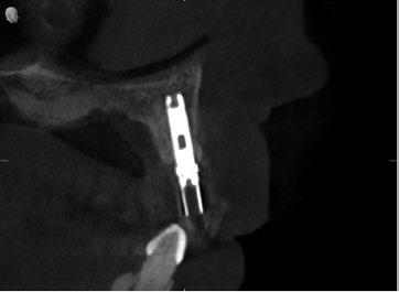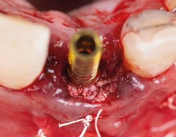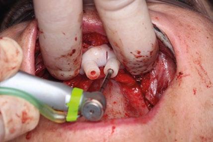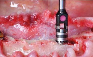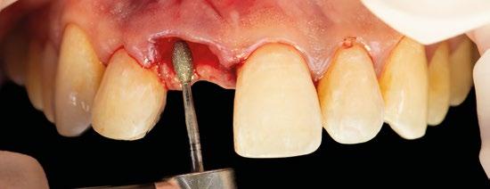 za un pilar de 3,5mm de altura, existe el riesgo de reducir el espacio protésico y de nuevo que aparezca una recesión gingival si el implante se coloca a nivel crestal o ligeramente subcrestal (1-1,5mm). Independientemente de la altura seleccionada (2,5mm o 3,5mm), de nuevo, esta situación implica la remodelación ósea mediante bone mill para acomodar el pilar. En la Fig.10 se observa cómo queda la remodelación