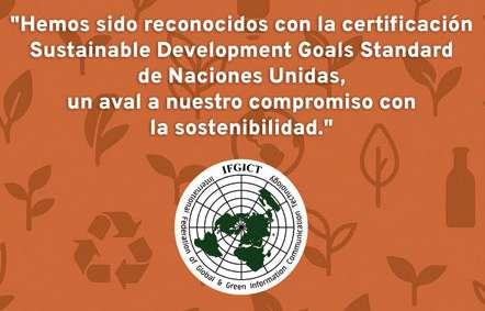 El compromiso con la sostenibilidad marca nuestro camino en esta nueva etapa. Avanzamos hacia la eliminación progresiva de plásticos en embalajes y hemos sido reconocidos con la certificación Sustainable Development Goals Standard de Naciones Unidas, que avala nuestros esfuerzos en la integración de criterios ambientales en nuestra actividad. Gracias al análisis de nuestra huella ambiental en 2024, logramos evitar la emisión de 9,42 toneladas de CO 2 eq., un ahorro energético de 39,3 MWh y un ahorro hídrico de 114,07 m³. Dicho