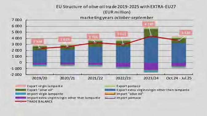 Según los últimos datos proporcionados por el servicio estadístico de la Comisión Europea, Agridata, se observa una recuperación de las exportaciones en esta última campaña 20247/2025, superando la media de las campañas anteriores. Datos a 30 de septiembre. Fuente: European Commission/Agridata/Olive oil and table olives Market.