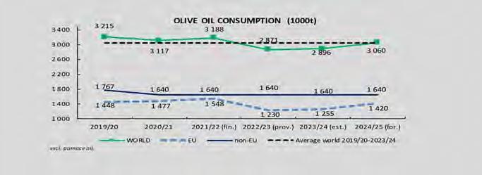 Según los datos proporcionados por el servicio estadístico de la Comisión Europea, Agridata se observa como el consumo mundial del aceite de oliva sigue recuperándose, a lo largo de esta campaña. La Europa productora sigue perdiendo consumidores, frente a los países productores no europeos que mantienen su consumo a lo largo de esta campaña. Datos a 30 de septiembre. Fuente: European Commission/Agridata/Olive oil and table olives Market.