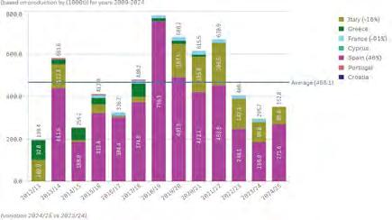España, Eslovenia y Croacia han incrementado su producción en un 66%, 64% y 60% respectivamente, siendo España la principal productora de aceite de oliva en Europa. Grecia ha incrementado un 30% y Portgal un 10%, en esta campaña. Italiabaja un 24%. Datos a 15 de octubre. Fuente: European Commission/Agridata/Olive oil and table olives Market.