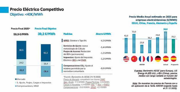 La Comisión Europea recomienda a los Estados reducir la carga fiscal, ajustar peajes y eliminar cargos no vinculados a los costes reales del sistema eléctrico. En esta línea, Rasero urgió a suprimir el Impuesto sobre el Valor de la Producción de la Energía Eléctrica (IVPEE) y a reducir el Impuesto Especial sobre la Electricidad al 0,5% para la industria, en línea con el Affordable Energy Action Plan.