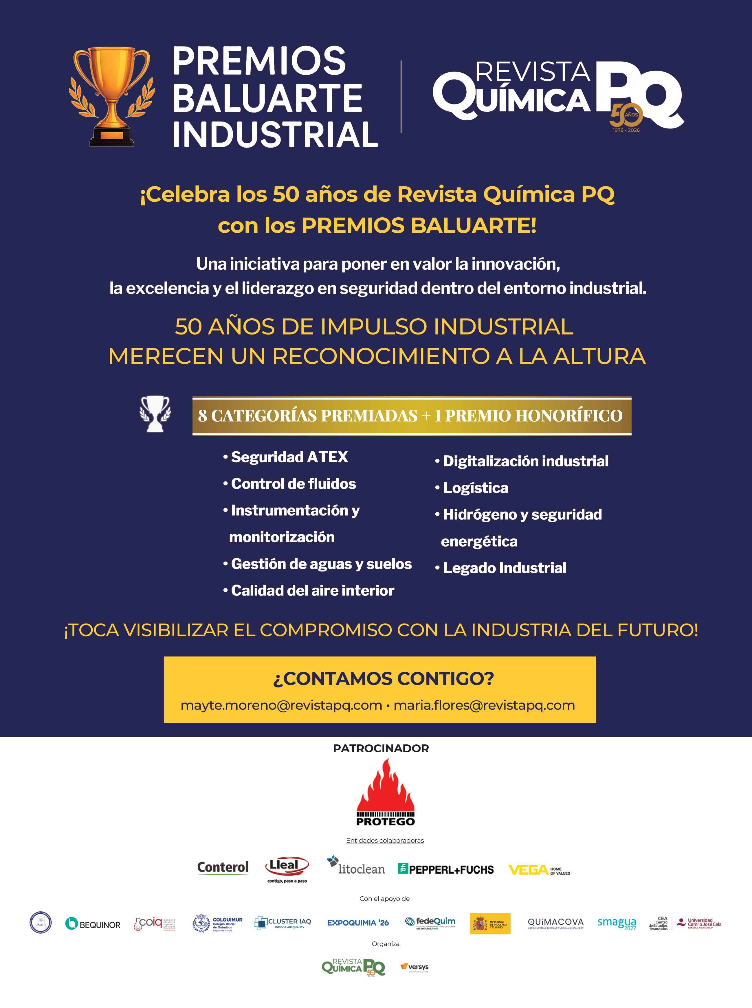 Desde Revista Química PQ agradecemos el apoyo recibido y reafirmamos nuestro compromiso con la seguridad como valor esencial. Con PROTEGO como patrocinador, el respaldo de LLEAL, CONTEROL, LITOCLEAN, VEGA y PEPPERL+FUCHS, y la implicación de asociaciones e instituciones como QUIMACOVA, FedeQuim, ANQUE, BEQUINOR, COIQ, COLQUIMUR, CLÚSTER IAQ, SMAGUA y el Ministerio de Industria y Turismo, los Premios Baluarte Industrial están llamados a convertirse en un referente duradero. Confiamos en que esta primera edición sea el inicio de un camino compartido.