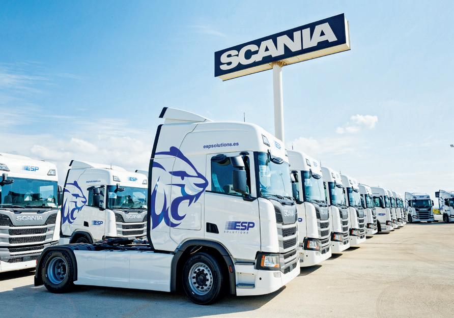 Los nuevos camiones de Scania que está incor porando ESP Solutions a su flota pertenecen a la serie R de Scania, y cuentan con motor de 13 litros de 450 CV y un par máximo de 2.350 Nm. Están equipados con la caja de cambios automá tica y con Scania Retarder, un sistema de control de velocidad que reduce los costes operativos y el tiempo de los viajes, además de ser un instru mento de seguridad.