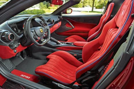 Outro elemento próprio do SP51 é a cor Rosso Passionale, nova tonalidade de três camadas criada exclusivamente para esta unidade, combinada com a lista longitudinal