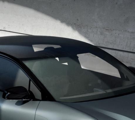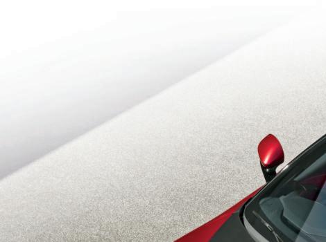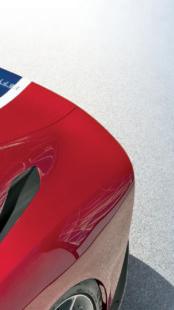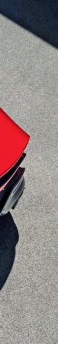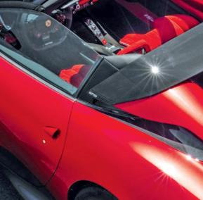 A tonalidade vermelha da carroçaria foi desenvolvida em exclusivo para este carro e é extensiva ao tecido em Alcantara do interior.