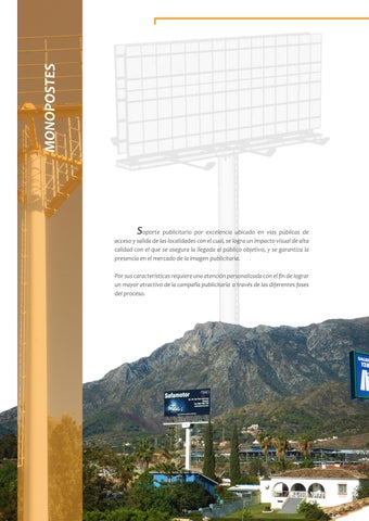 acceso y salida de las localidades con el cual, se logra un impacto visual de alta calidad con el que se asegura la llegada al público objetivo, y se garantiza la presencia en el mercado de la imagen publicitaria. Por sus características requiere una atención personalizada con el fin de lograr un mayor atractivo de la campaña publicitaria a través de las diferentes fases del proceso.