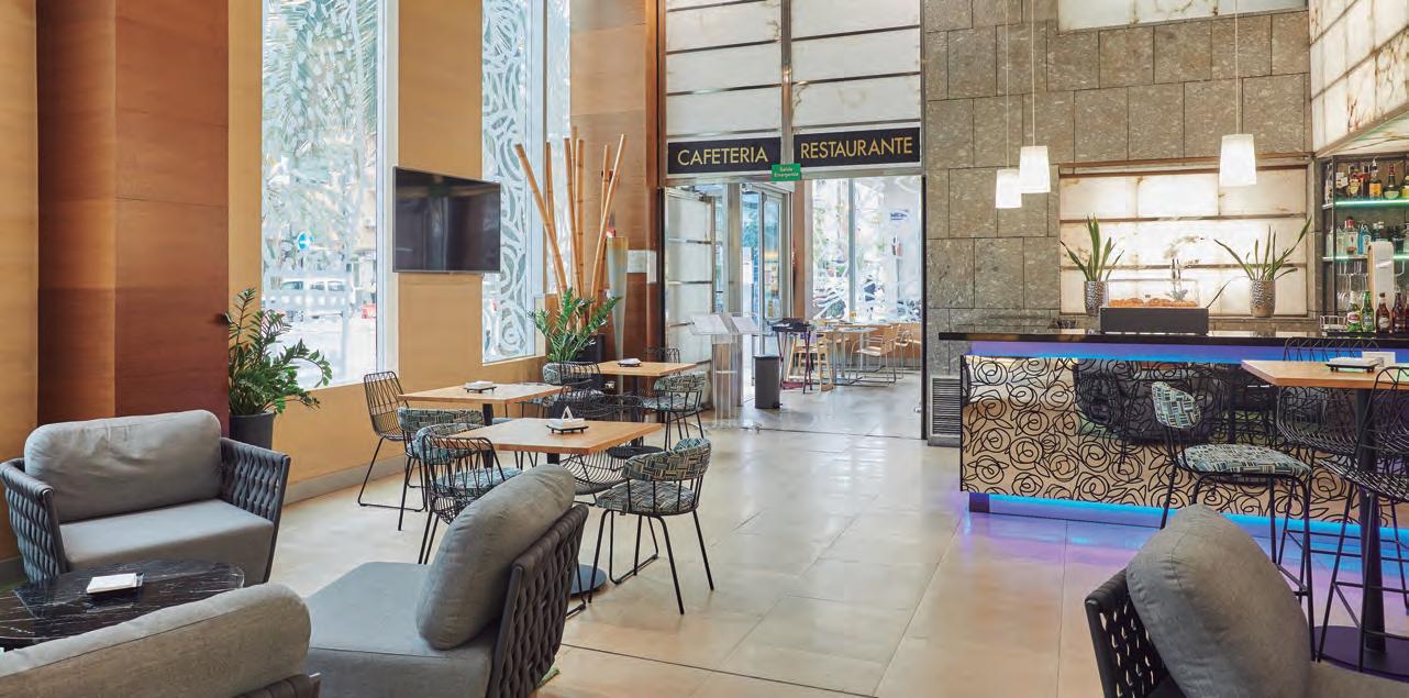 personas, dotados de tecnología avanzada y adaptando los espacios a las necesidades de los clientes, excelentes para convenciones, reuniones de empresa y celebraciones. Además. llevó a cabo una importante reforma del hotel en 2015 con un interiorismo que potencia la luminosidad combinado con un diseño vanguardista.